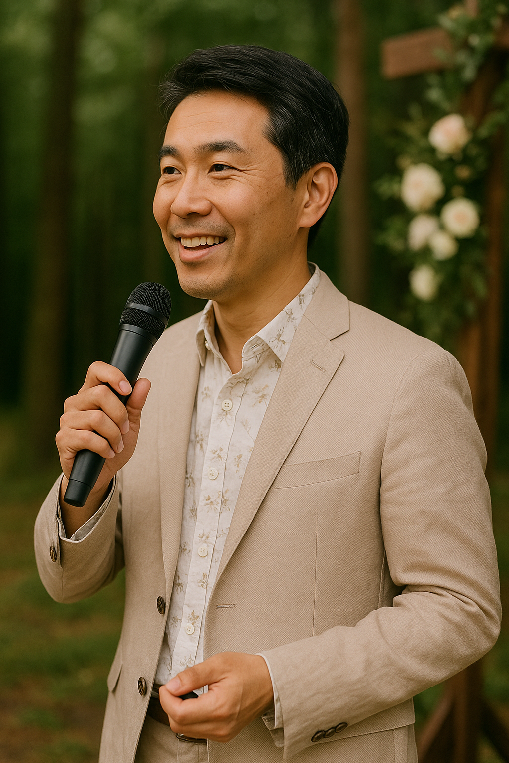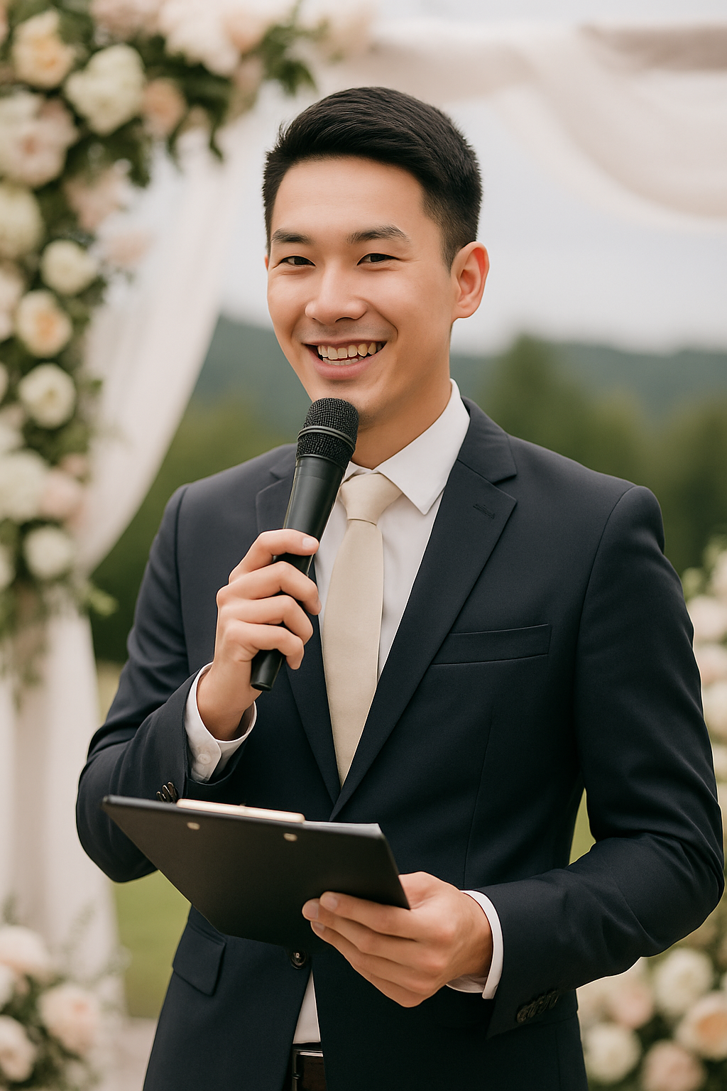 我是 James,可以活潑而自然,也可以沉穩而溫暖,用最舒適的節奏,讓你們安心享受婚禮。